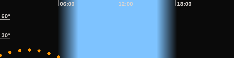 | Aufgang | 23:13 Uhr im Südosten (αAz = 134,2°) |