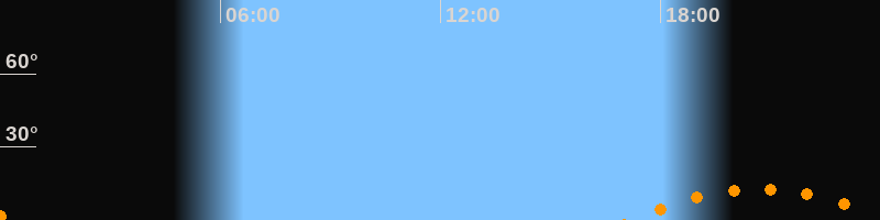 | Aufgang | 17:11 Uhr im Südosten (αAz = 134,2°) |