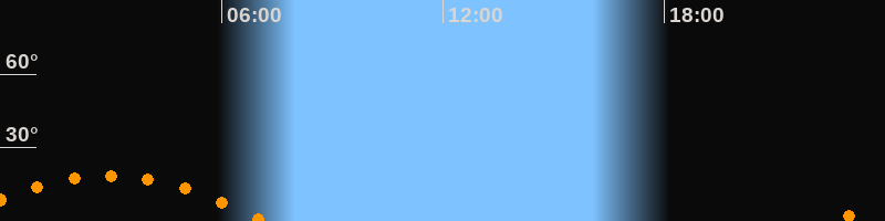| Untergang | 07:09 Uhr im Südwesten (αAz = 236,9°) |