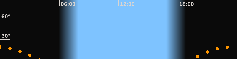 | Untergang | 03:52 Uhr im Südwesten (αAz = 236,9°) |