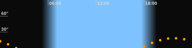 | Aufgang | 17:31 Uhr im Südosten (αAz = 123,1°) |