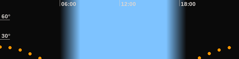 | Untergang | 04:13 Uhr im Südwesten (αAz = 236,9°) |