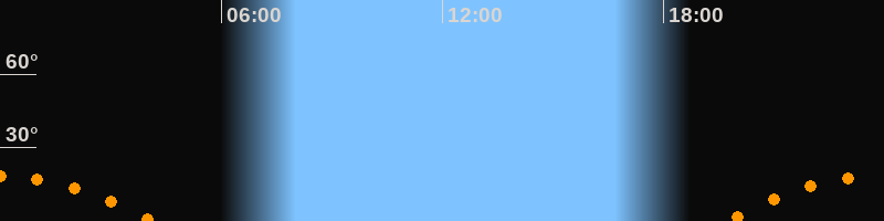 | Untergang | 04:11 Uhr im Südwesten (αAz = 236,9°) |