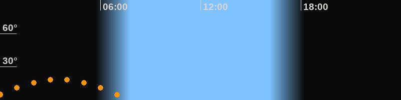 | Aufgang | 23:12 Uhr im Südosten (αAz = 123,1°) |