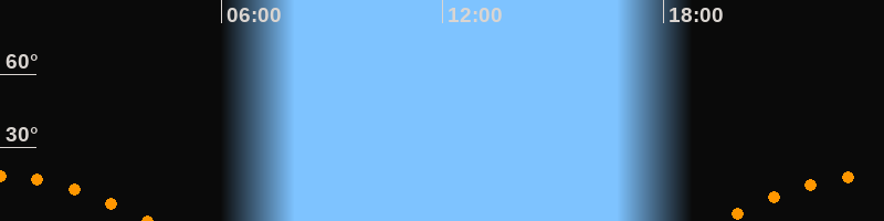 | Untergang | 04:03 Uhr im Südwesten (αAz = 236,9°) |