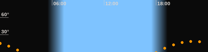 | Aufgang | 18:01 Uhr im Südosten (αAz = 123,1°) |