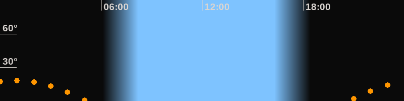 | Untergang | 05:10 Uhr im Südwesten (αAz = 236,9°) |