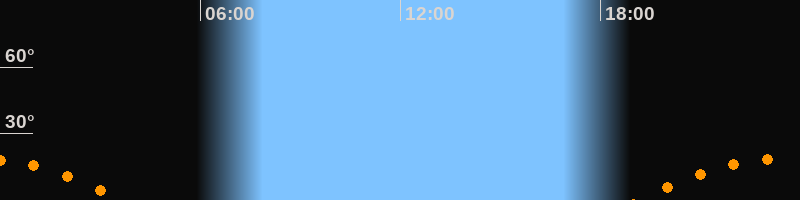 | Untergang | 03:40 Uhr im Südwesten (αAz = 236,9°) |