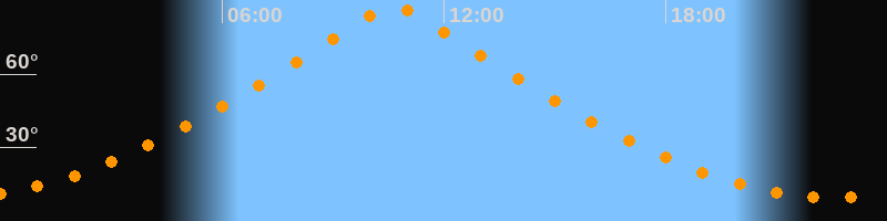 | Höchster Stand (Kulmination) | 10:38 Uhr (h = 88,3°) |