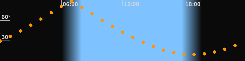 | Höchster Stand (Kulmination) | 06:54 Uhr (h = 88,3°) |