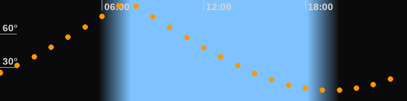 | Höchster Stand (Kulmination) | 07:28 Uhr (h = 88,3°) |
