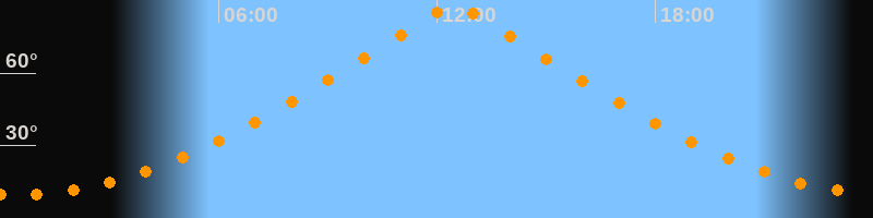 | Höchster Stand (Kulmination) | 12:28 Uhr (h = 88,3°) |