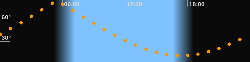 | Höchster Stand (Kulmination) | 05:26 Uhr (h = 88,3°) |
