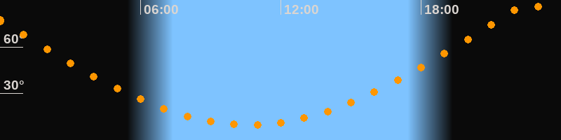 | Höchster Stand (Kulmination) | 22:37 Uhr (h = 88,3°) |