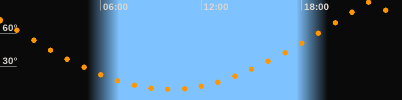 | Höchster Stand (Kulmination) | 22:06 Uhr (h = 88,3°) |