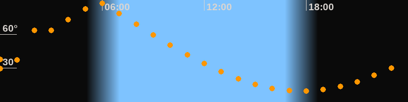 | Höchster Stand (Kulmination) | 05:47 Uhr (h = 88,3°) |