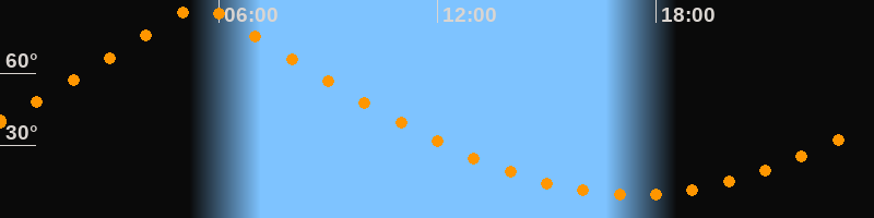 | Höchster Stand (Kulmination) | 05:28 Uhr (h = 88,3°) |
