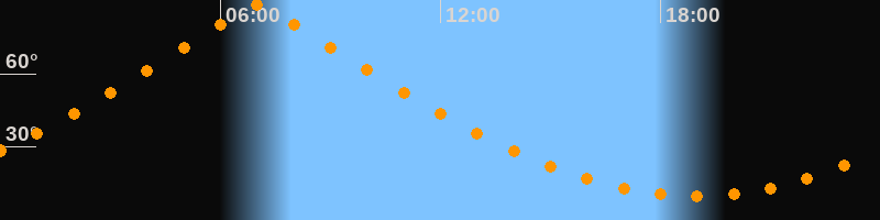 | Höchster Stand (Kulmination) | 07:00 Uhr (h = 88,3°) |