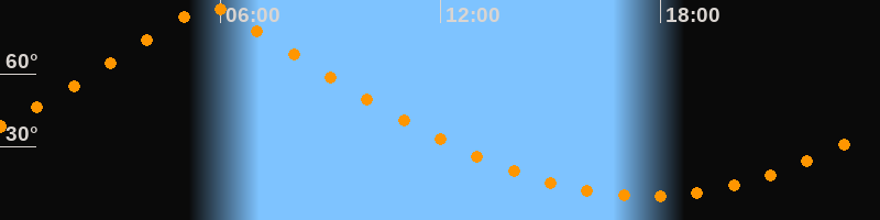 | Höchster Stand (Kulmination) | 05:41 Uhr (h = 88,3°) |