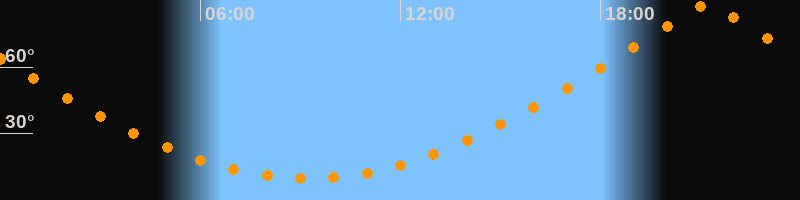 | Höchster Stand (Kulmination) | 21:12 Uhr (h = 88,3°) |