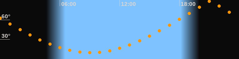 | Höchster Stand (Kulmination) | 21:04 Uhr (h = 88,3°) |