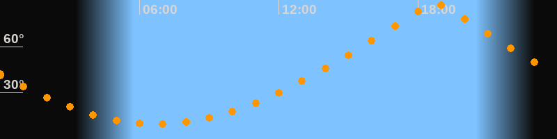 | Höchster Stand (Kulmination) | 18:44 Uhr (h = 88,3°) |