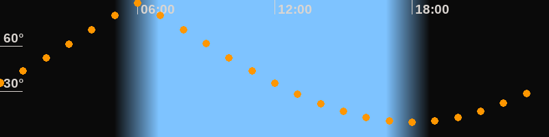 | Höchster Stand (Kulmination) | 06:00 Uhr (h = 88,3°) |