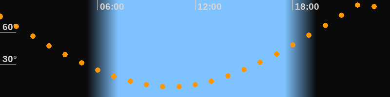 | Höchster Stand (Kulmination) | 22:25 Uhr (h = 88,3°) |