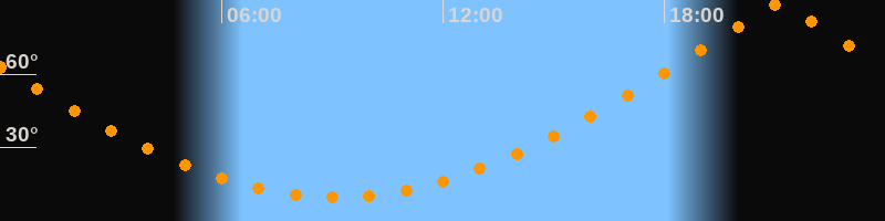 | Höchster Stand (Kulmination) | 21:06 Uhr (h = 88,3°) |