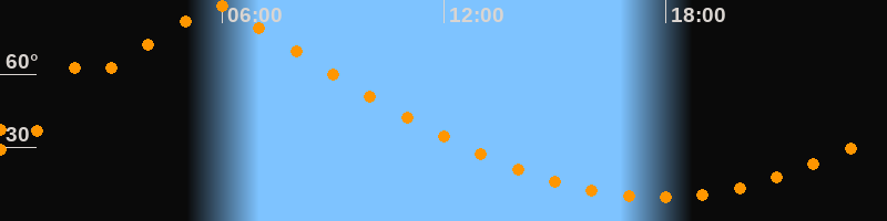 Höchster Stand (Kulmination)05:50 Uhr (h = 88,3°)