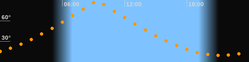 | Höchster Stand (Kulmination) | 09:21 Uhr (h = 88,3°) |
