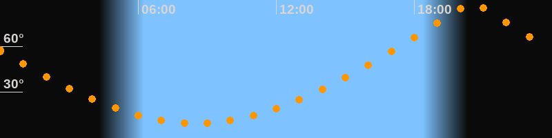 | Höchster Stand (Kulmination) | 20:30 Uhr (h = 88,3°) |