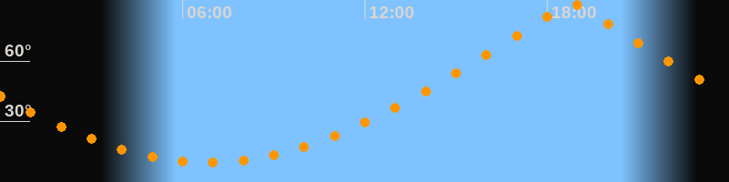 | Höchster Stand (Kulmination) | 18:49 Uhr (h = 88,3°) |