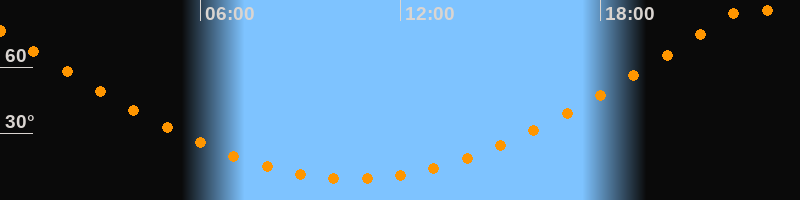 | Höchster Stand (Kulmination) | 22:34 Uhr (h = 88,3°) |