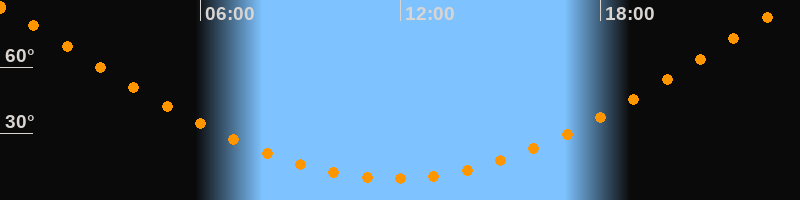 | Höchster Stand (Kulmination) | 23:46 Uhr (h = 88,3°) |
