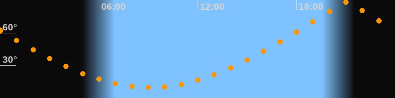 | Höchster Stand (Kulmination) | 21:02 Uhr (h = 88,3°) |