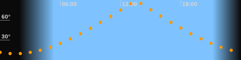 | Höchster Stand (Kulmination) | 13:30 Uhr (h = 88,3°) |