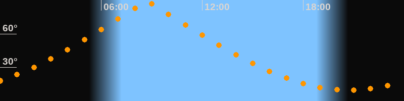 | Höchster Stand (Kulmination) | 08:43 Uhr (h = 88,3°) |