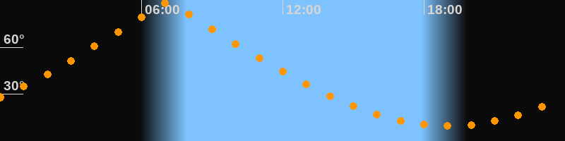 | Höchster Stand (Kulmination) | 07:05 Uhr (h = 88,3°) |