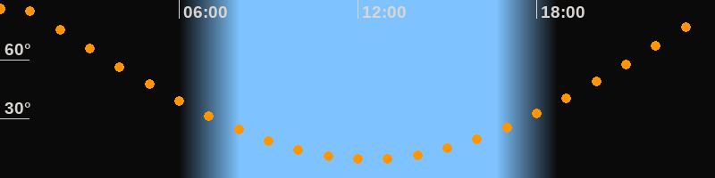 | Höchster Stand (Kulmination) | 00:23 Uhr (h = 88,3°) |