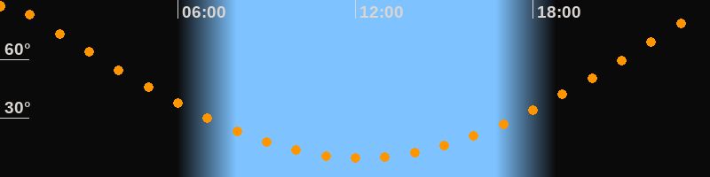| Höchster Stand (Kulmination) | 00:11 Uhr (h = 88,3°) |