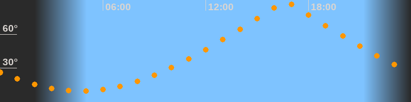 | Höchster Stand (Kulmination) | 16:40 Uhr (h = 88,3°) |