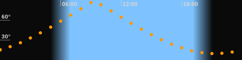 | Höchster Stand (Kulmination) | 09:19 Uhr (h = 88,3°) |