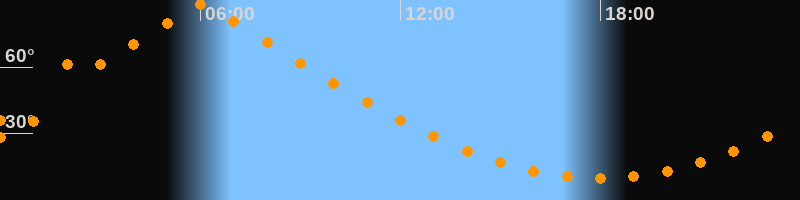 | Höchster Stand (Kulmination) | 06:02 Uhr (h = 88,3°) |