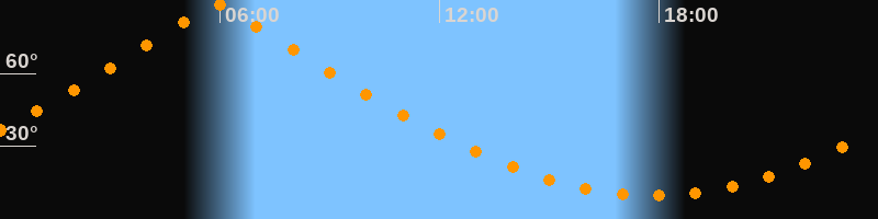 | Höchster Stand (Kulmination) | 05:54 Uhr (h = 88,3°) |