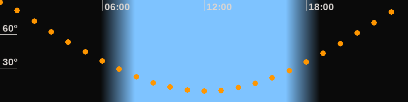 Höchster Stand (Kulmination)00:02 Uhr (h = 88,3°)