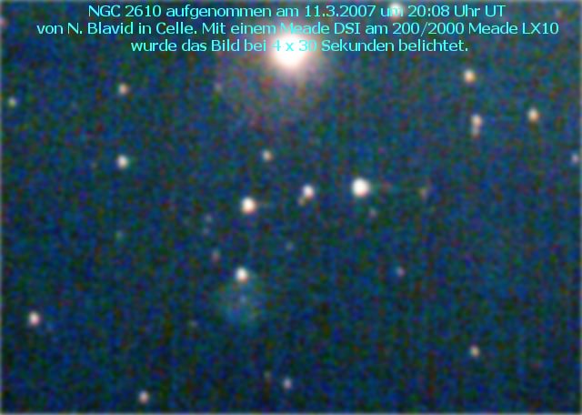 NGC 2610 ist ein planetarischer Nebel um einen 15,5 mag hellen Zentralstern. Entdeckt wurde das Objekt am 31. Dezember 1785 von Friedrich Wilhelm Herschel.