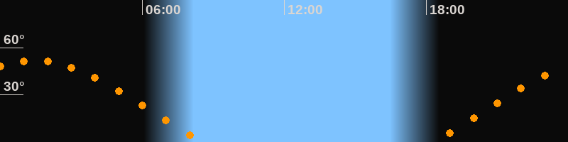 | Aufgang | 18:16 Uhr im Osten (αAz = 69,1°) |