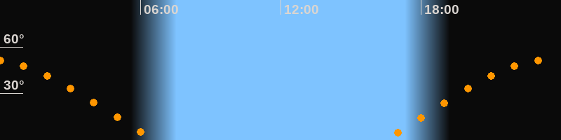 | Aufgang | 16:22 Uhr im Osten (αAz = 69,1°) |