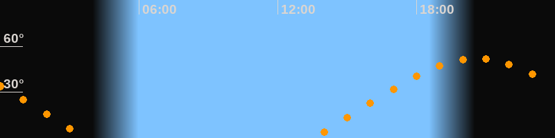 | Aufgang | 13:29 Uhr im Osten (αAz = 69,1°) |